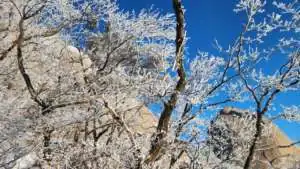 백운대가 가까워지면서 상고대가 보인다. 진정으로 아름다운 색은 꾸밀 필요가 없는 흰색이라고 하였는데…. 정말 멋지다. 잠시나마 내면에 묻은 때가 씻겨질 것만 같다.