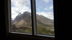 작년에 이어 올해도 훈자를 방문하였다. 방안에서 바라본 창문 밖 풍경이다. 하루 종일 누워서 쳐다보아도 지겹지가 않다.